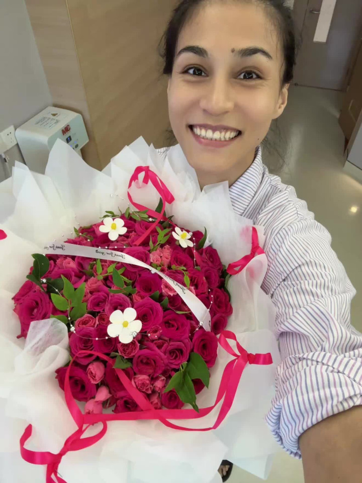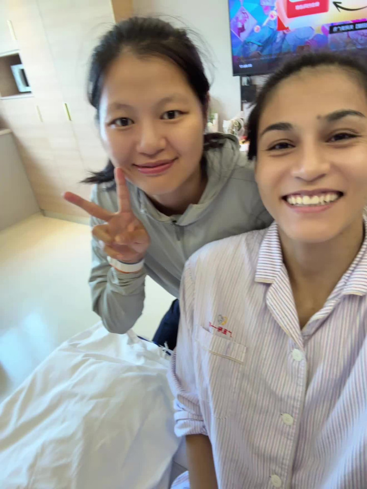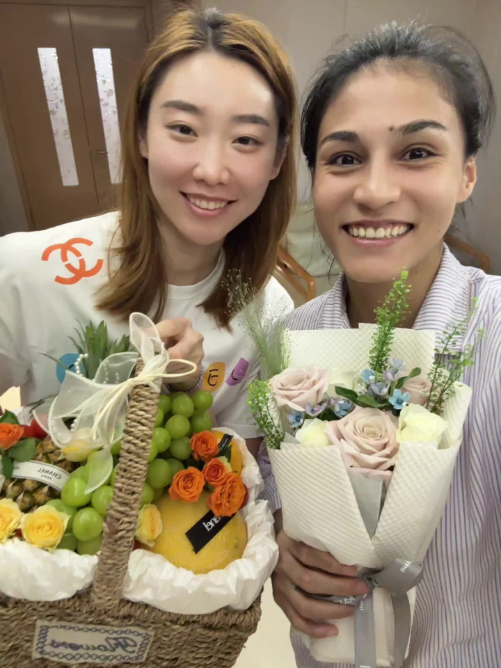 配文:有幸我有一群温柔善良体贴的朋友们,你们的到来给我的病房带来温暖的阳光治愈着我的心情,还有很多问候我关心我的朋友们,谢谢你们愿我们都健康平安。